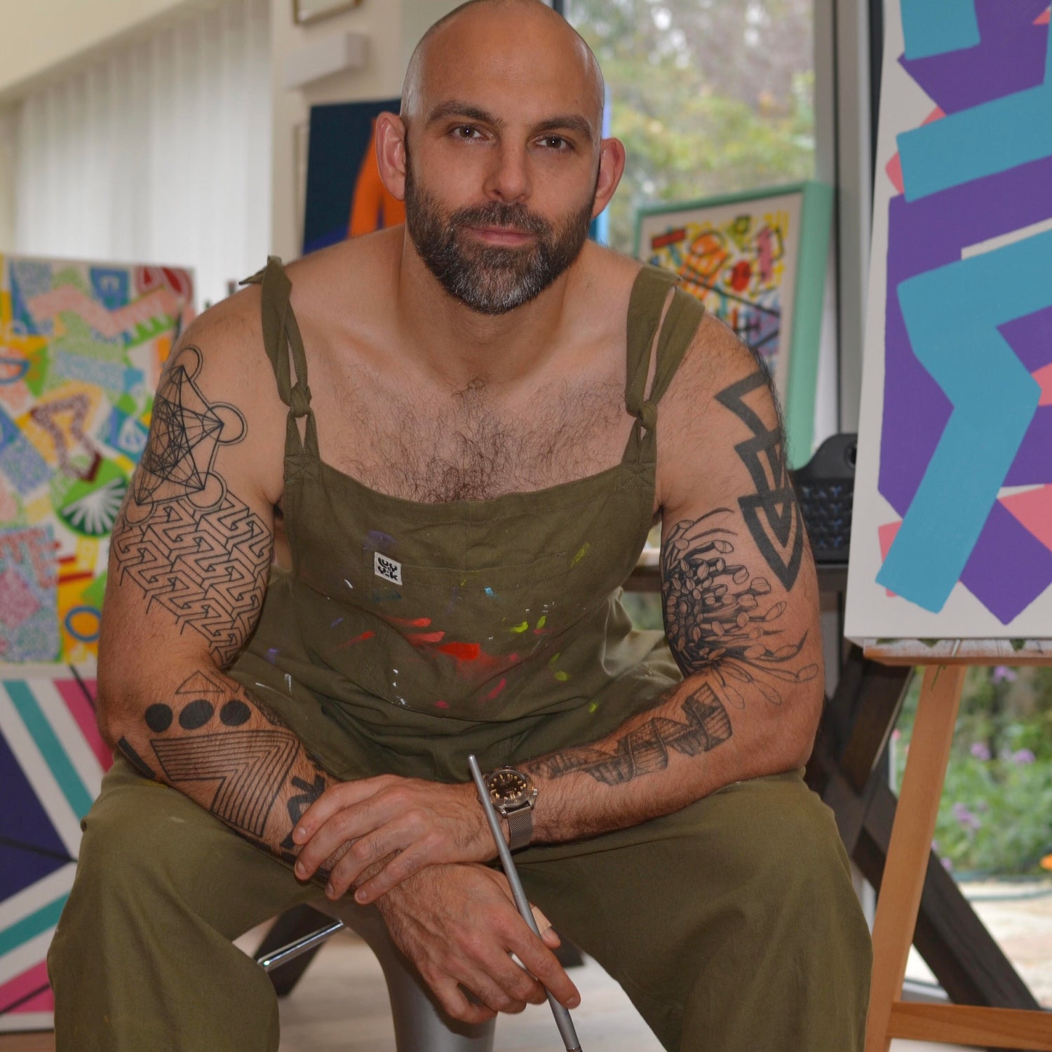 "My work is influenced by my experiences overcoming mental ill-health and addiction. I use bright and highly saturated colours which take on an uplifting but also defiant quality. The viewer is invited into a bold interpretation of the process of moving from a place of disconnection and sorrow, to one of reconnection and joy."